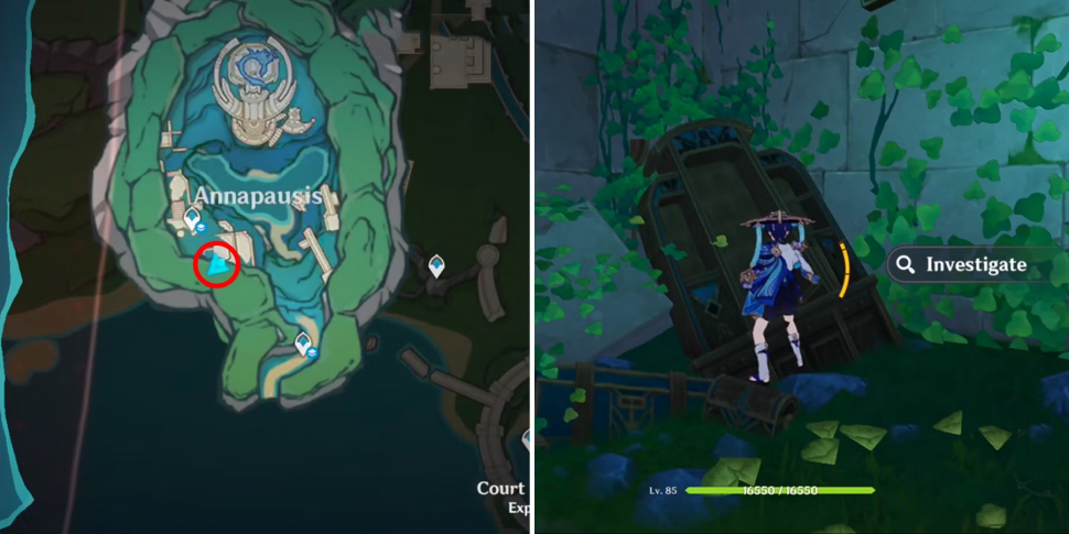 Воспользуйтесь северной точкой пути Аннапаузиса и доплывите до вершины замка, а затем нырните вниз, чтобы выбраться из воды. На вершине появится Драгоценный сундук, рядом с которым есть светящееся место, которое нужно исследовать. Исследуйте сияние, чтобы получить Загадочную страницу IX.