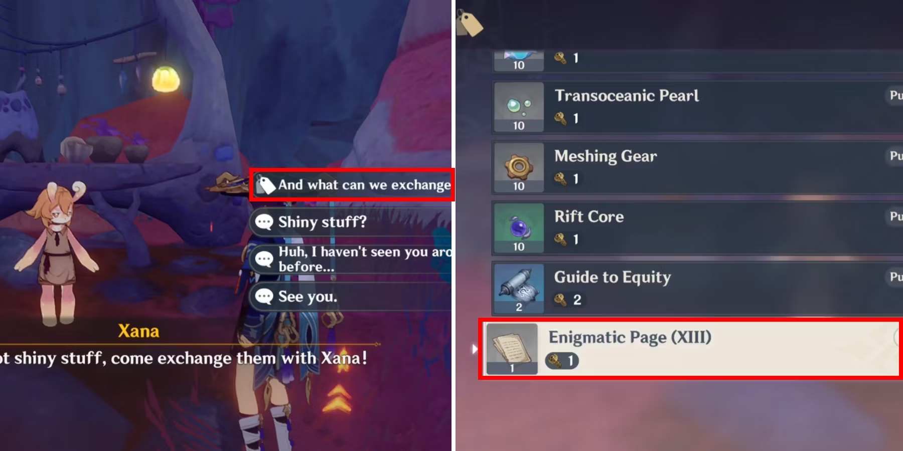 Посетите Ксану в деревне Мерузея, чтобы купить 13-ю Загадочную страницу за одну Странную часть в Genshin Impact. Возможно, игрокам придется предварительно выполнить квест Mamere's Ancient Colors.