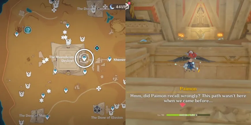 Чтобы получить достижение "Конец коридора" в Genshin Impact, игроки должны открыть дверь в определенном месте. Используйте точку телепортации к юго-западу от мавзолея короля Дешрета. Затем опуститесь вниз и пройдите на северо-запад, чтобы найти укромную дверь. Откройте ее и идите по коридорам, пока не найдете дверь, для открытия которой требуется пять Сверкающих компонентов.