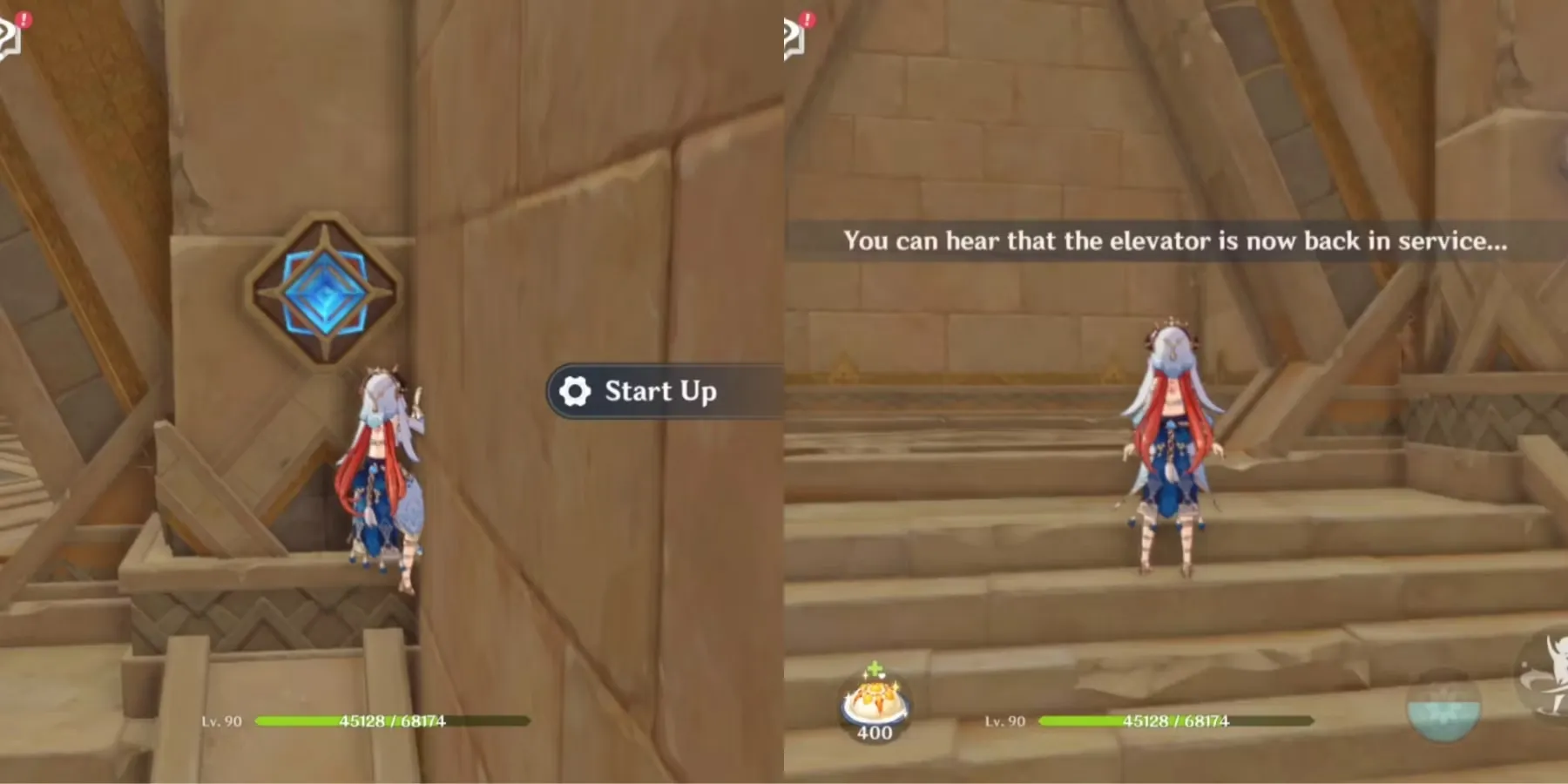 Спустившись на лифте, найдите кнопку, чтобы активировать другой лифт. На этот раз механизм доставит игроков на верхний уровень.