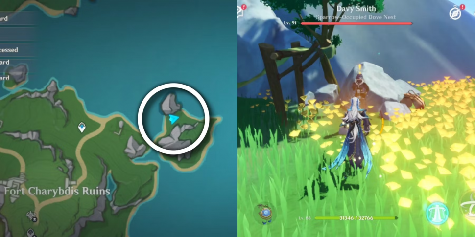 После этого отправляйтесь на небольшую территорию к востоку от руин форта Харибда и найдите там кладоискателя по имени Дэви Смит из Genshin Impact. Победите врага, чтобы получить сокровище "Liam's Ballad" в Genshin Impact.