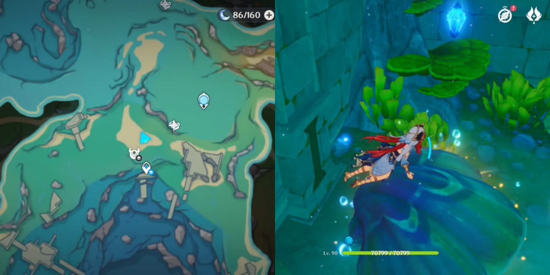 Чтобы получить карту сокровищ Liam's Ballad в Genshin Impact, игроки должны воспользоваться точкой телепортации к юго-западу от статуи Семерых в регионе Морте, затем подплыть к ней и направиться на север. Продолжайте плыть, пока не увидите небольшие руины с огромной раковиной и кристаллическим механизмом. Вокруг моллюска может быть невидимый барьер, поэтому игроки должны обойти руины и войти в них через арку с разбитым окном. Ударьте по огромной раковине и подберите стеклянную бутылку внутри, чтобы получить карту сокровищ "Баллада Лиама".