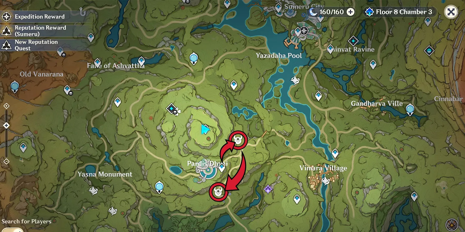 Из Pardis Dhyai идите на северо-восток к первому магу Цицинов. Победите врага, а затем отправляйтесь на юго-запад ко второму магу Фатуи в Genshin Impact.