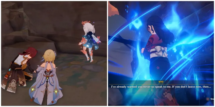 Достигнув отмеченной зоны, Путешественник и Паймон начинают рассказывать историю о том, как они столкнулись с "призраком". Genshin Impact Heizou приходит к двум теориям: таинственная женщина на самом деле опасна и пытается проклясть игроков, или же по неизвестной причине она отпугивает их.