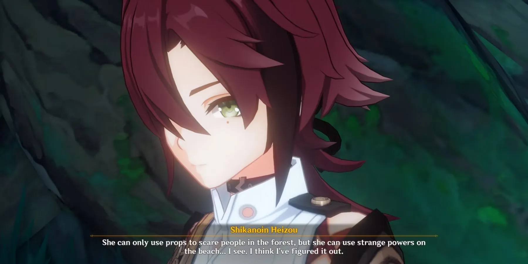 Достигнув отмеченной зоны, Путешественник и Паймон начинают рассказывать историю о том, как они столкнулись с "призраком". Genshin Impact Heizou приходит к двум теориям: таинственная женщина на самом деле опасна и пытается проклясть игроков, или же по неизвестной причине она отпугивает их.