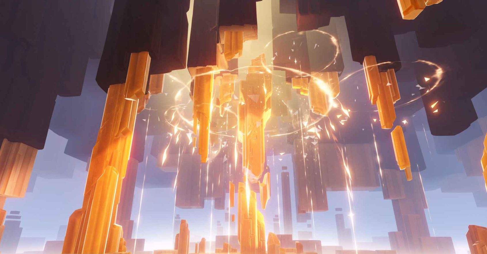 Перед вами находится один столб, который поднимается и опускается, а его высшая точка достигает вершины вышеупомянутых высоких кристаллов.