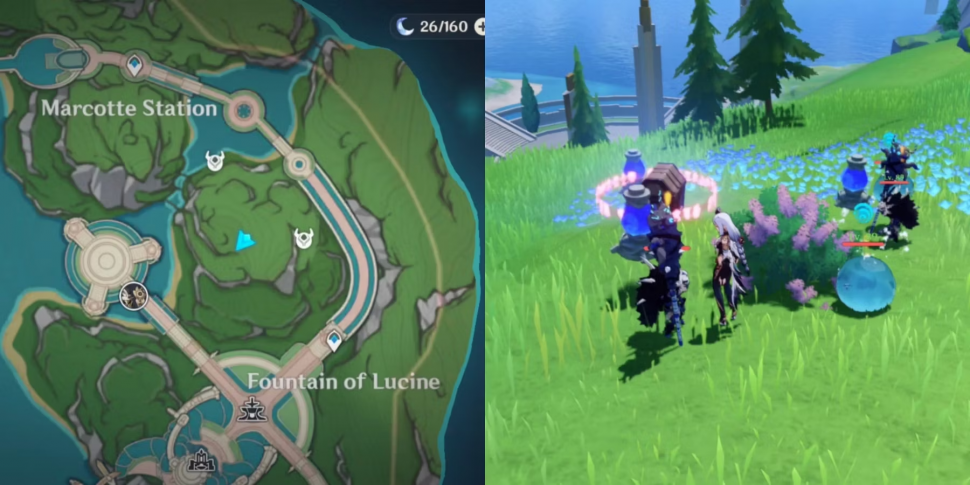 Между станцией Marcotte и зданием Opera Epiclese находится открытое поле с большим количеством кристаллов обнаружения объема воды в Genshin Impact. Посреди всего этого возвышается запечатанный гидромонумент, который необходимо открыть, выполнив следующие действия.