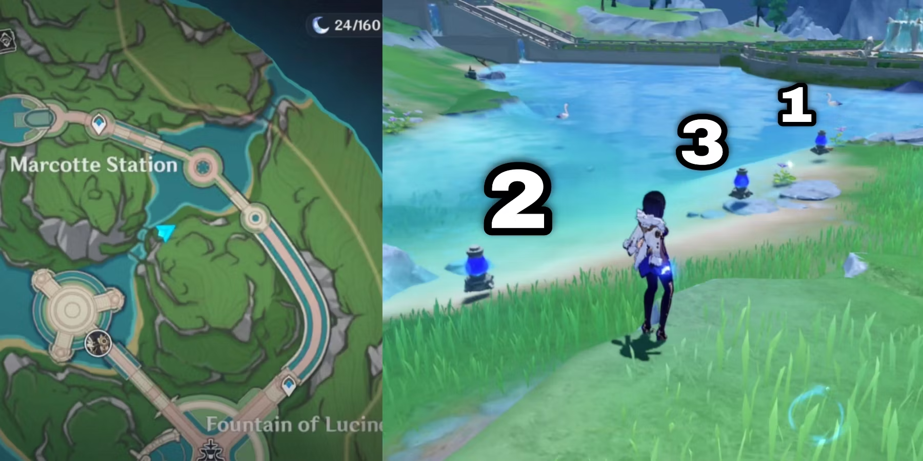 Genshin Impact: Путеводитель по гидромонументу станции Маркотте (головоломка с кристаллами для определения объема воды)
