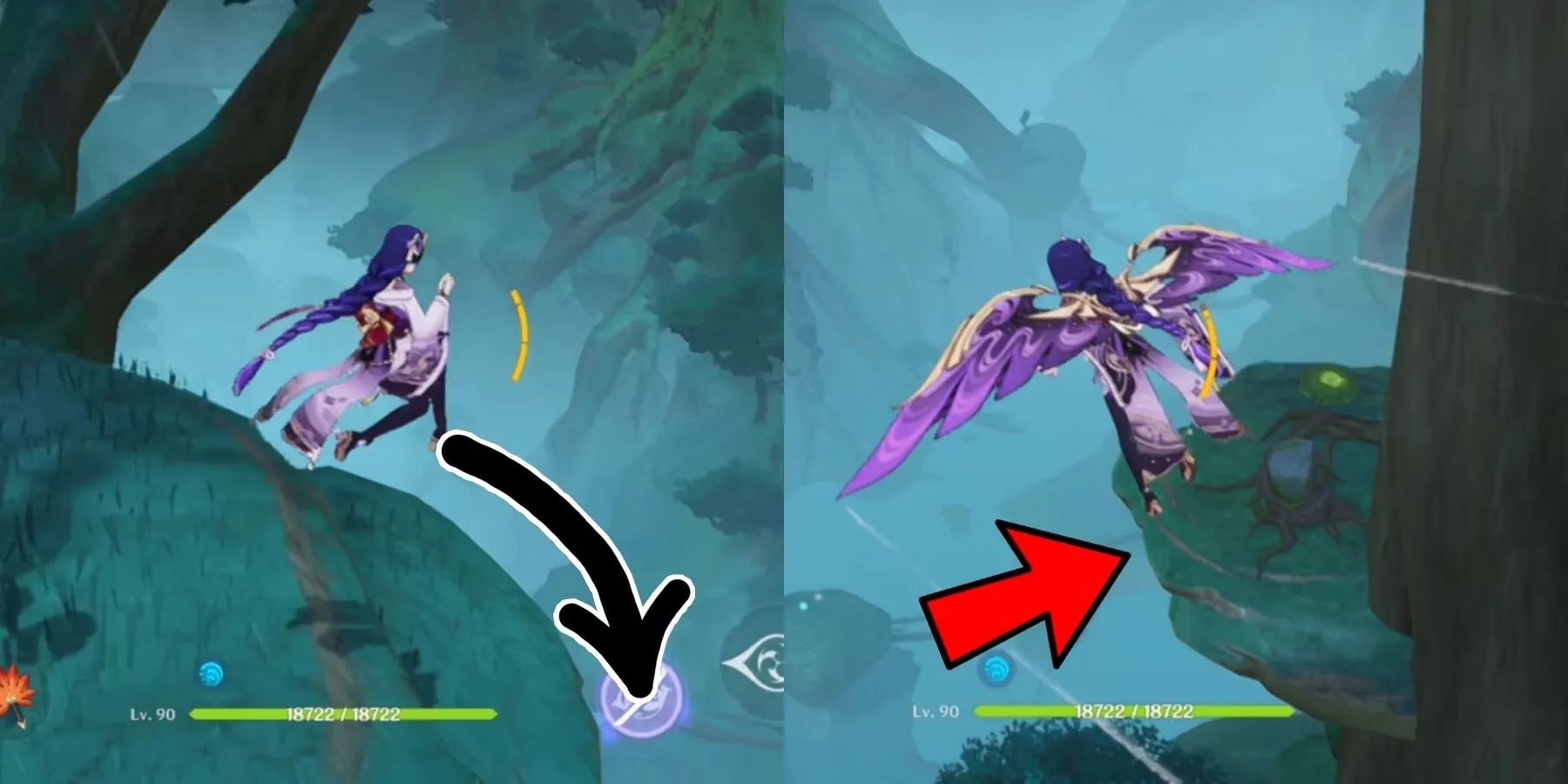 Получив ускорение от прыгучего гриба, активируйте планер и летите вокруг дерева, чтобы найти платформу нижнего уровня.