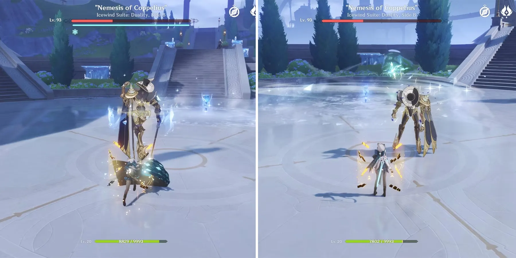 Время от времени Nemesis of Coppelius Ice Suite призывает три орба, наносящие криоурон, а также генерирует криощит, для снятия которого требуются элементальные реакции.