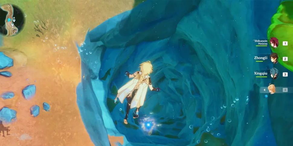 Чтобы добраться до Императора Огня и Железа в Genshin Impact, игрокам придется заплыть в подводную пещеру. Хотя босс отмечен на карте, добраться до него не так-то просто, поскольку вход в пещеру только один, и расположен он на северо-западе, далеко от места нахождения босса-краба.