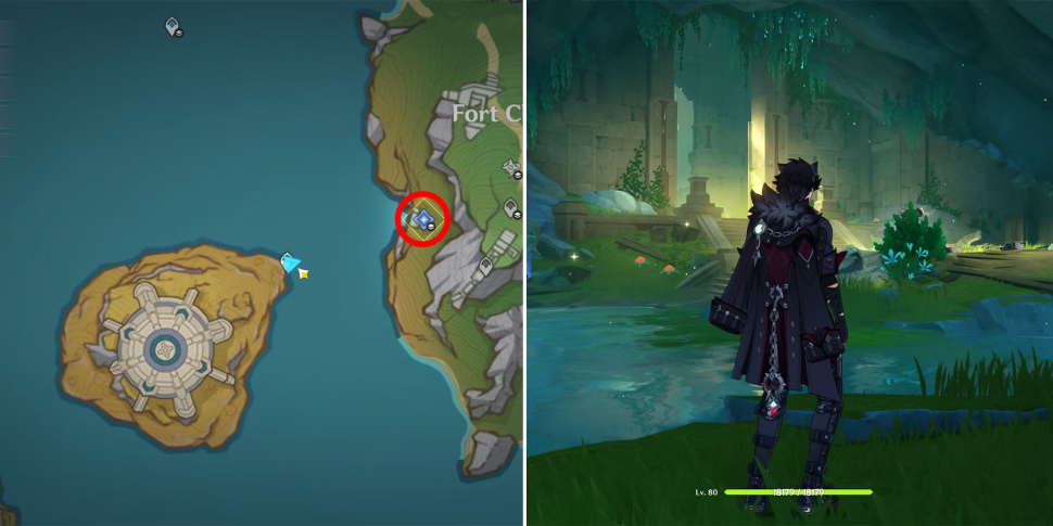 При входе в пещеру "Руины форта Харибда" игроки столкнутся с несколькими врагами, которых они могут проигнорировать или победить. Затем им нужно выбрать вариант "Жизнь", чтобы ответить на загадку о плите пещеры и продолжить свой путь.