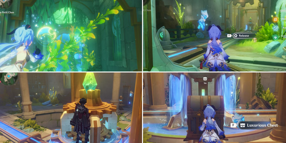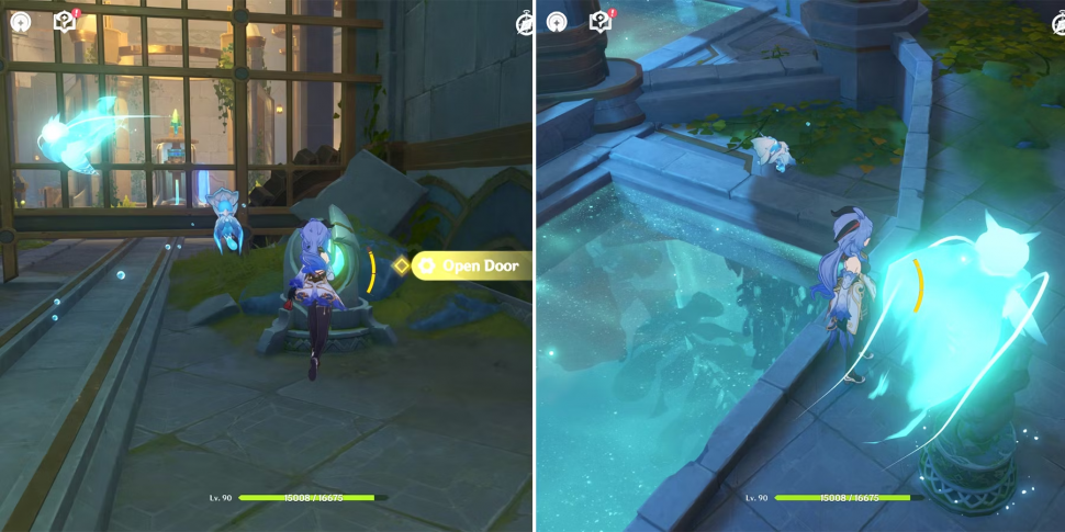 - Получить лук персонажа Genshin Impact и снова ударить по кристаллу, чтобы открыть вторую дверь