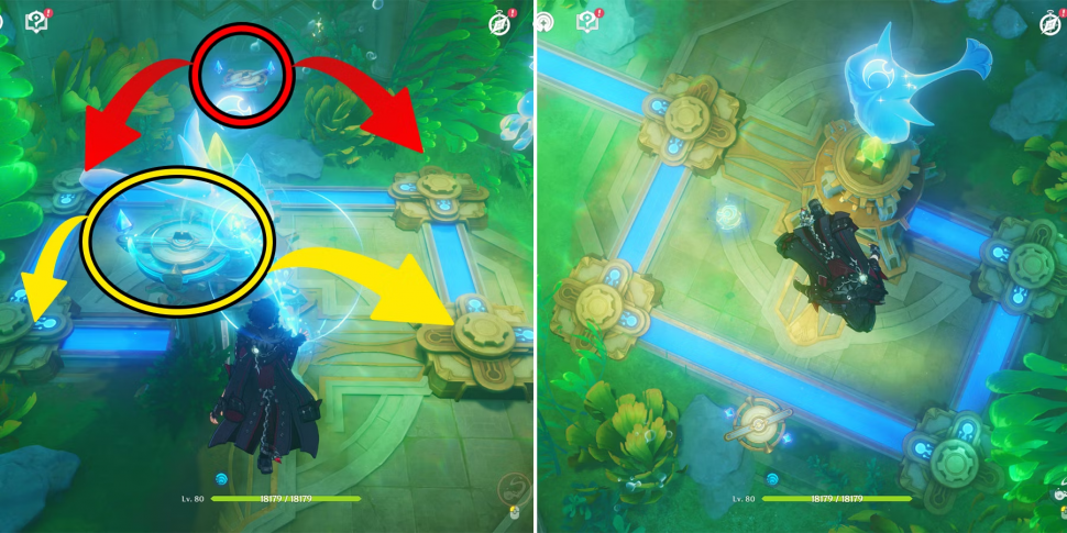 Далее игрокам необходимо решить механику "Вертикальная подъемная колонна" и "Луч Элифаса", чтобы попасть в локацию "Orthant of Wishes". Чтобы решить загадку механики в Genshin Impact, выполните следующие действия.