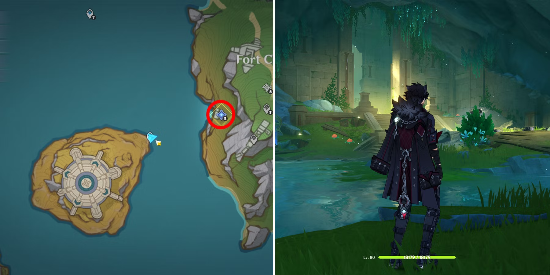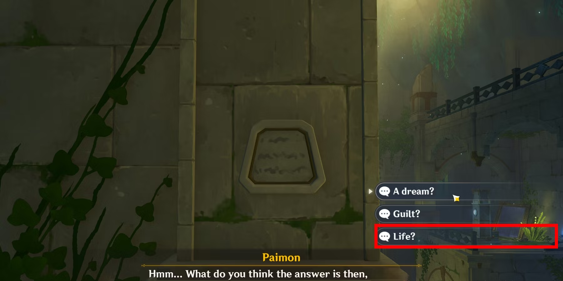 При входе в пещеру "Руины форта Харибда" игроки столкнутся с несколькими врагами, которых они могут проигнорировать или победить. Затем им нужно выбрать вариант "Жизнь", чтобы ответить на загадку о плите пещеры и продолжить свой путь.