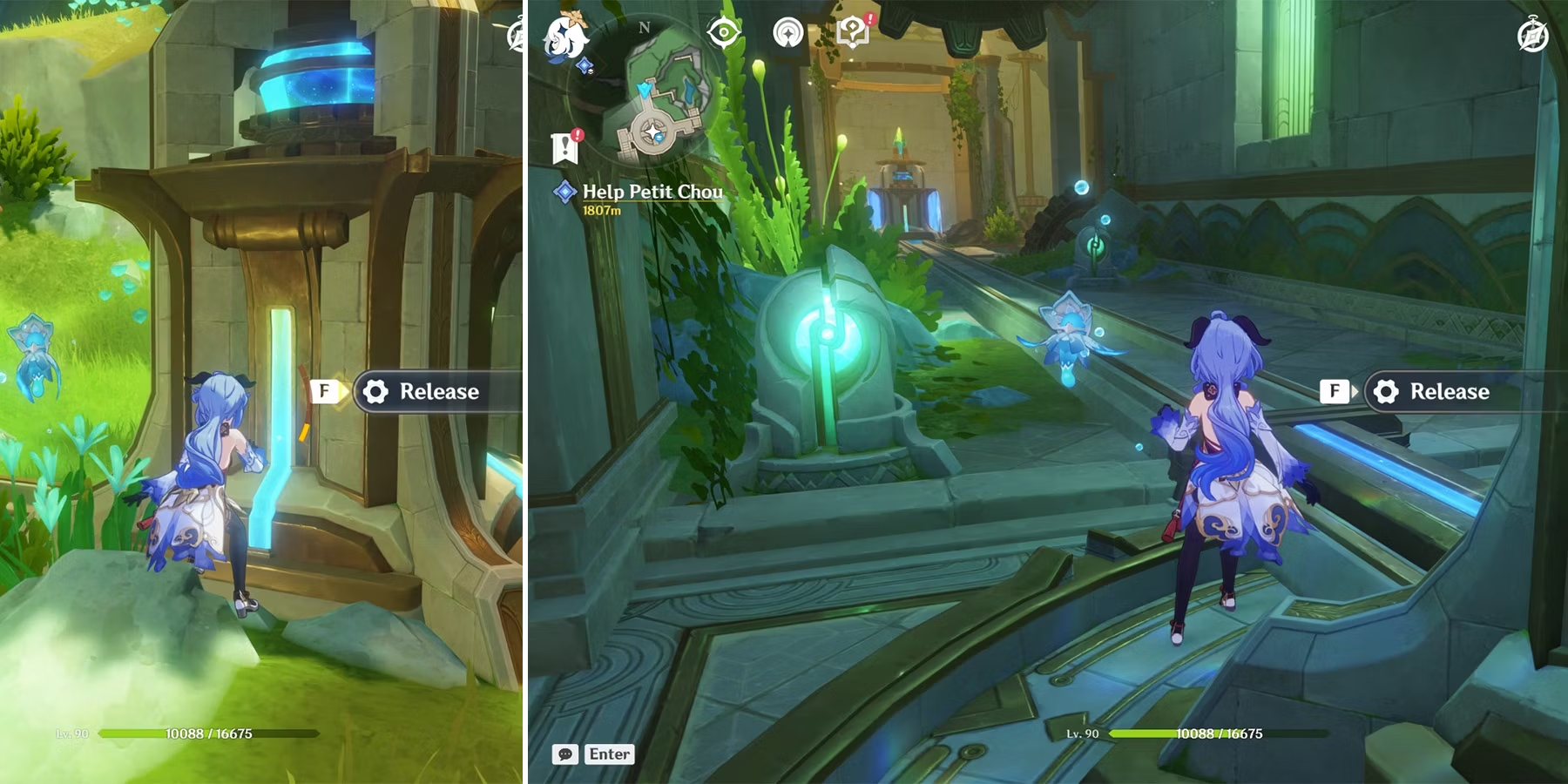 Далее игрокам необходимо решить механику "Вертикальная подъемная колонна" и "Луч Элифаса", чтобы попасть в локацию "Orthant of Wishes". Чтобы решить загадку механики в Genshin Impact, выполните следующие действия.