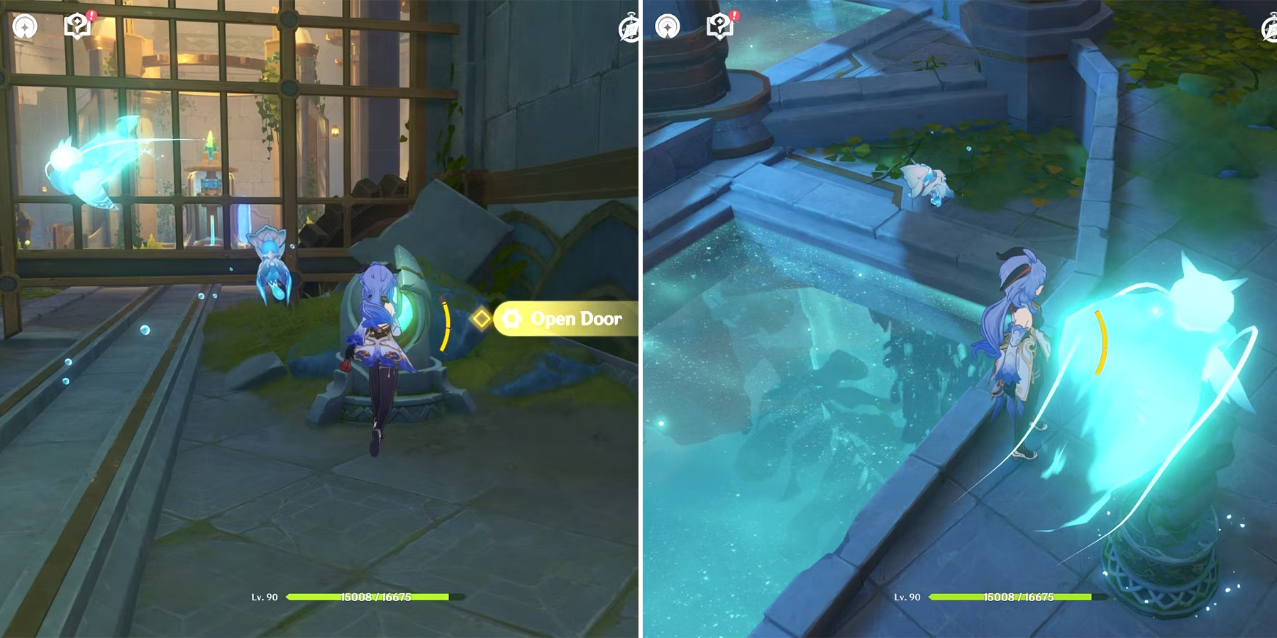 - Получить лук персонажа Genshin Impact и снова ударить по кристаллу, чтобы открыть вторую дверь