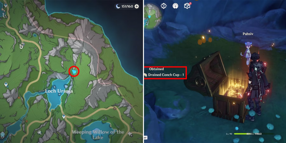 После выполнения задания The Wild Fairy Of Erinnyes будет открыта пещера к северо-востоку от Loch Urania. Внутри пещеры путешественники найдут драгоценный сундук, в котором находится последний Кубок осушенного конха в Genshin Impact.