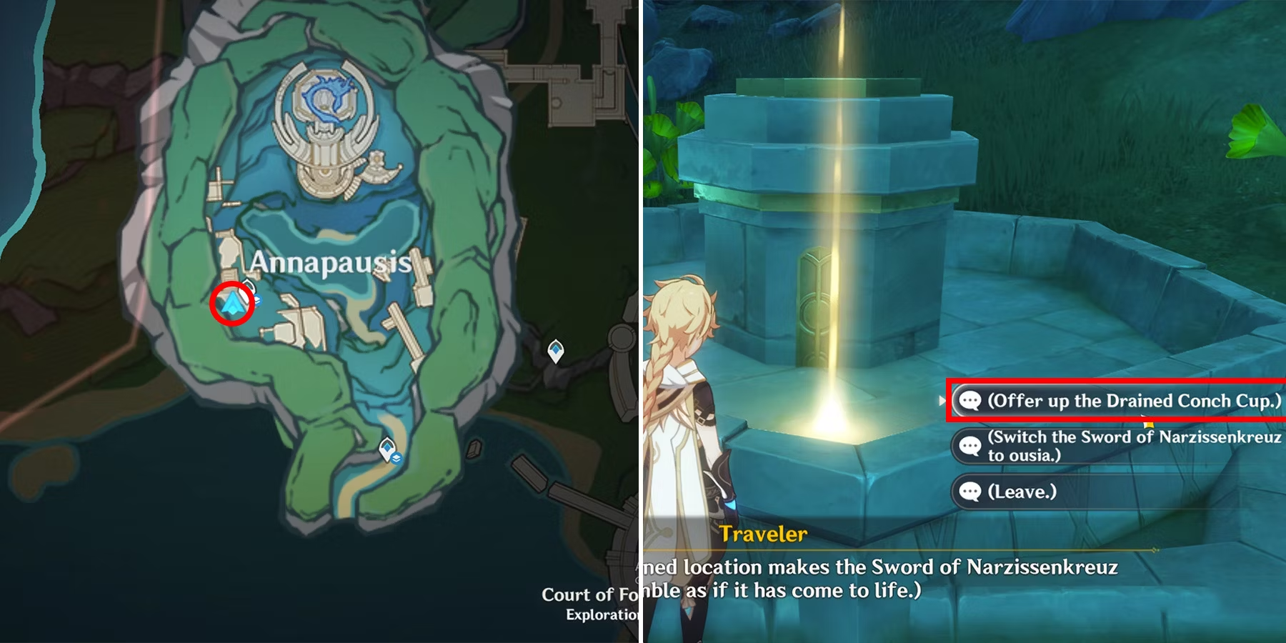 Чаша из осушенного конха в Genshin Impact используется для утончения Меча Нарциссенкрейца. Чтобы использовать ее в качестве материала для усовершенствования священного клинка, Путешественники должны:
