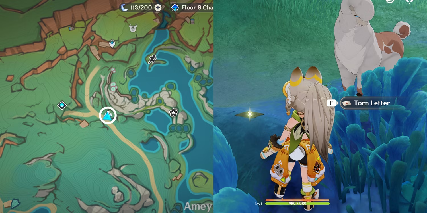 Отправляйтесь в домен артефактов «Обсидиановый кодекс» и идите на восток, чтобы получить Порванное письмо рядом с альпаками. Если игроки еще не сделали этого, они также могут пойти по тропинке на юго-запад от домена, чтобы попасть в подземный ход. Там, собрав два Ключа от места в Genshin Impact, игроки смогут встретиться с непростым врагом - Местной Легендой Натлана.