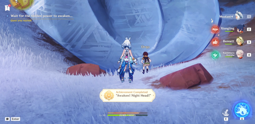 Телепортируйтесь к путевой точке к северо-востоку от Храма предков и отправляйтесь на восток к кратеру с оранжевой окантовкой. Внутри кратера стоит мальчик, с которым вы можете поговорить, чтобы начать квест.