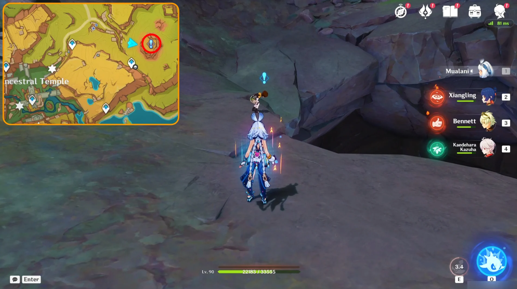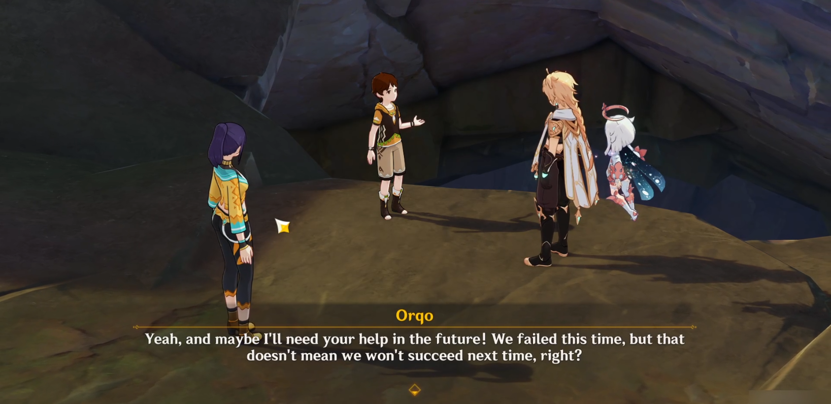 Телепортируйтесь к путевой точке к северо-востоку от Храма предков и отправляйтесь на восток к кратеру с оранжевой окантовкой. Внутри кратера стоит мальчик, с которым вы можете поговорить, чтобы начать квест.