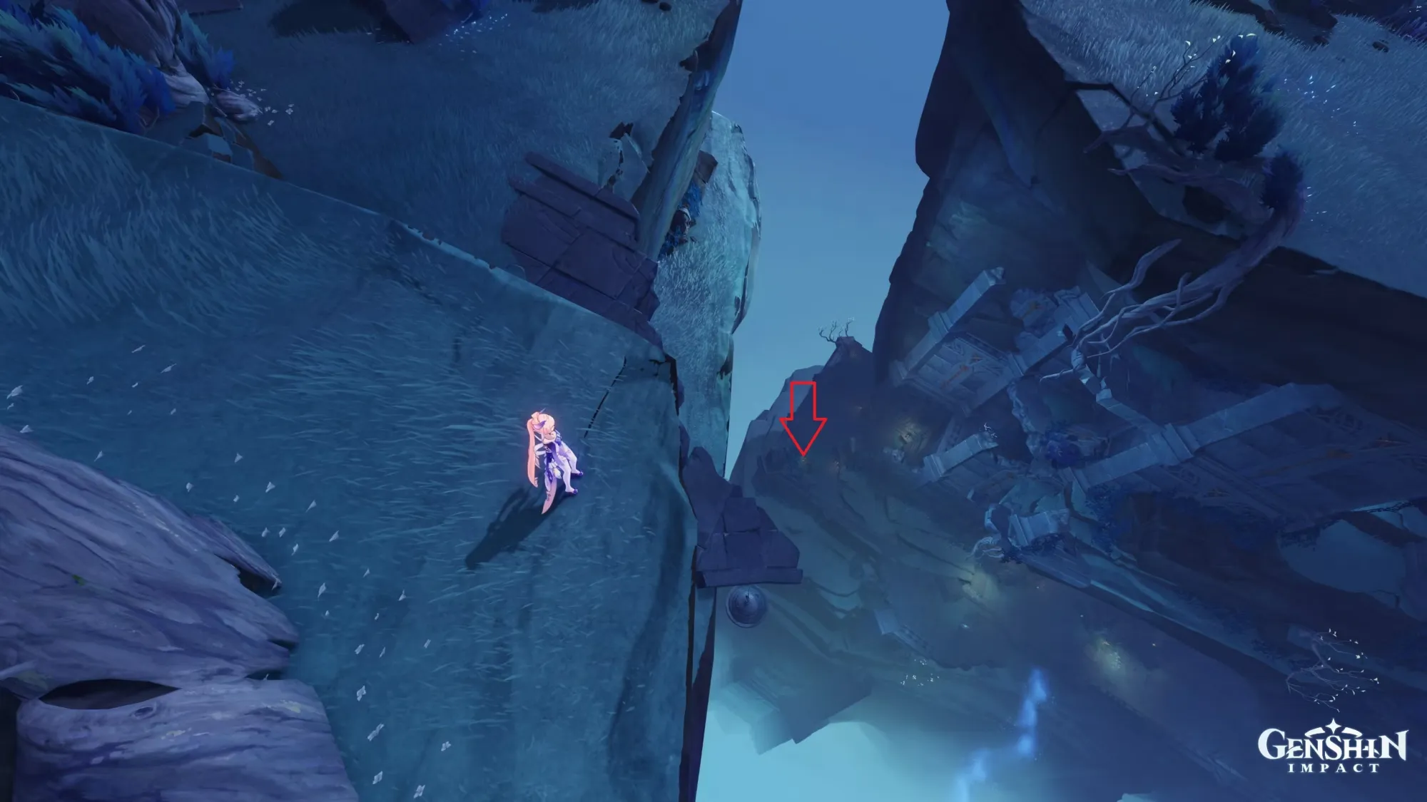 Игроку нужно перепрыгнуть через нее, взять эссенцию Белосвета с "места поклонения сущности" и отнести ее на крышу здания, в котором находится Исуменасу, переключив механизм "день-ночь" на Белосвет. Затем игроку следует вернуться в комнату, где находится Исуменасу, и один раз ударить по треугольному механизму. Снова переключите механизм "день-ночь" на "вечная ночь" и, наконец, вернитесь к разговору с Исуменасу.