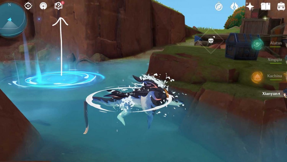 Чтобы пройти третье испытание, идите на север, к берегу. На этот раз вселитесь в Тепетлизавра или используйте Качину в Genshin Impact, чтобы пройти испытание.