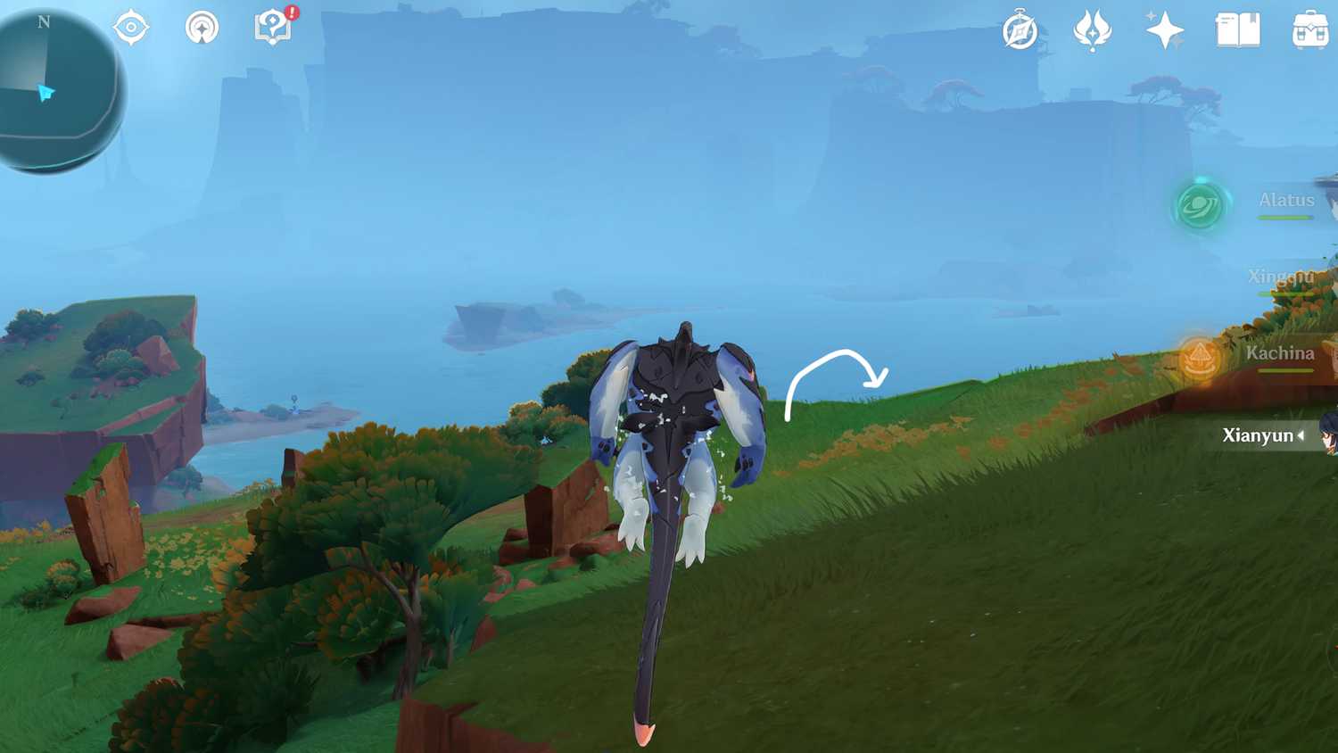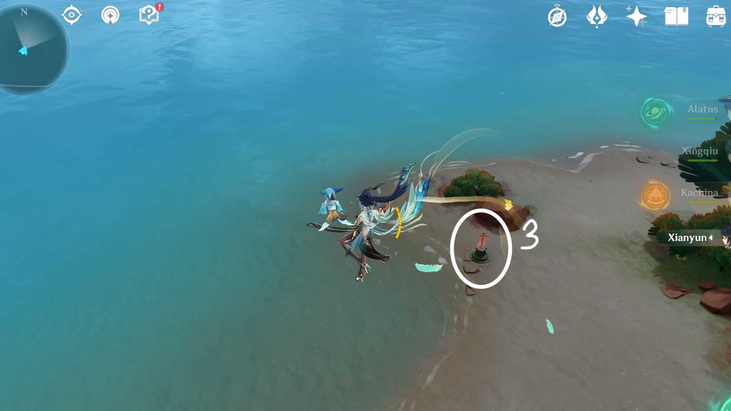 Чтобы пройти третье испытание, идите на север, к берегу. На этот раз вселитесь в Тепетлизавра или используйте Качину в Genshin Impact, чтобы пройти испытание.