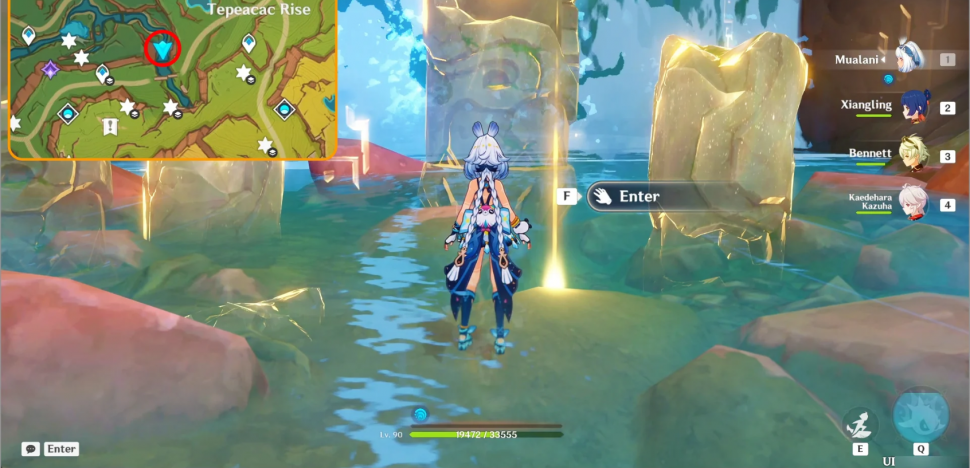 Телепортируйтесь к южной путевой точке Восхода Тепеакак и отправляйтесь к водопаду на западе, где вы увидите те же светящиеся столбы. Взаимодействуйте с ними, чтобы телепортироваться в зону, где вы впервые встретили своего спутника-саурианца, и этот квест начнется автоматически. Прибыв на место, продолжайте следовать квестовой навигации, пока не вернетесь к «Детям эха».