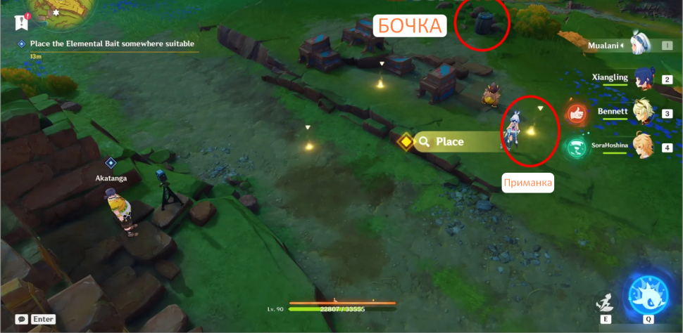 Во время квеста вам нужно очистить воду, вызвав Кохолазавра (его атака), чтобы разбить все ящики и победить маленького слизняка. После рыбалки снова используйте Кохолазавра, чтобы погнаться за плавающей рыбой, потому что Паймону очень нужна эта рыба. В конце квеста вы получите достижение «...И спасибо за всю рыбу!».