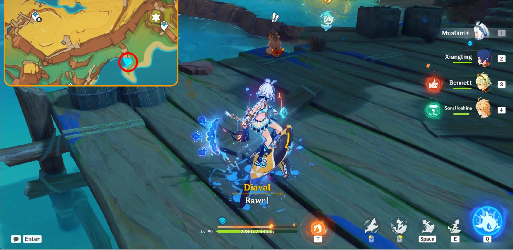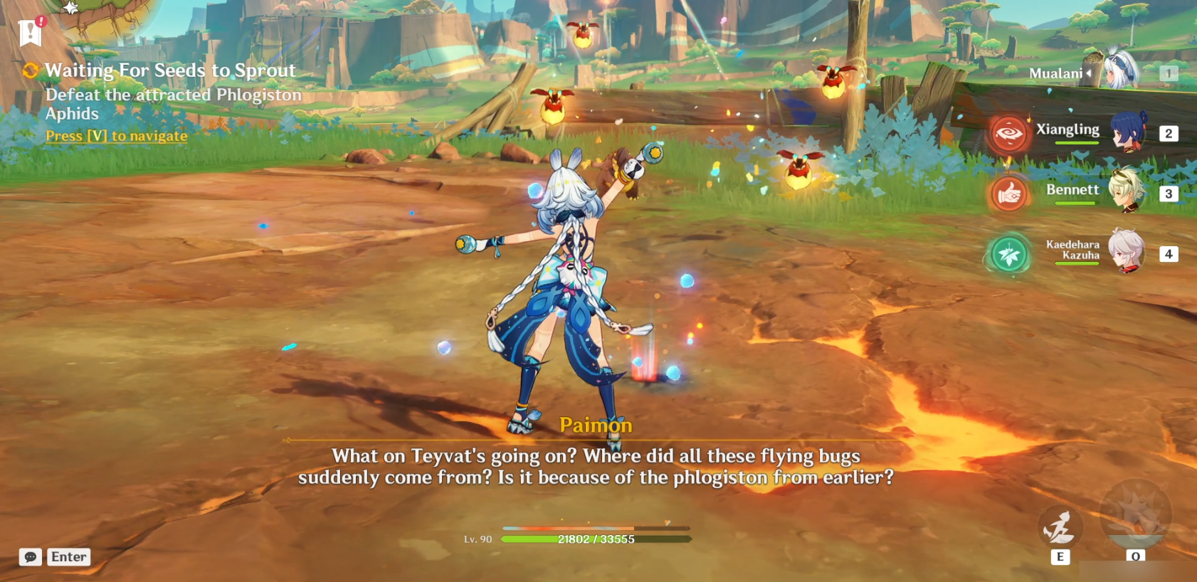 Во время квеста вам нужно очистить воду, вызвав Кохолазавра (его атака), чтобы разбить все ящики и победить маленького слизняка. После рыбалки снова используйте Кохолазавра, чтобы погнаться за плавающей рыбой, потому что Паймону очень нужна эта рыба. В конце квеста вы получите достижение «...И спасибо за всю рыбу!».