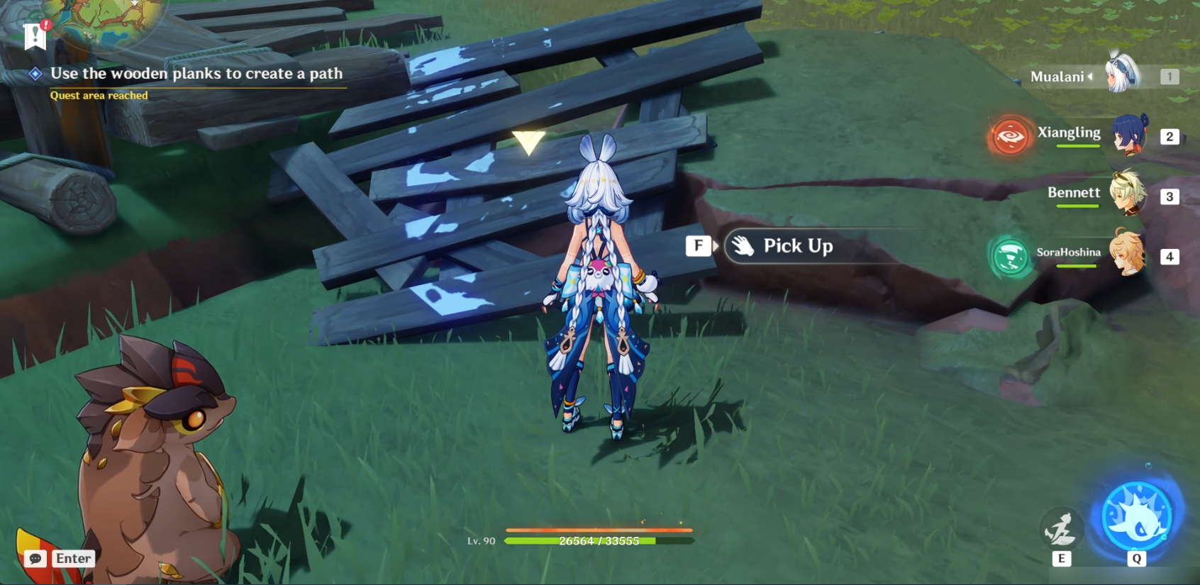 После того как вы поговорите с NPC по этому квесту, поговорите со всеми альпаками в округе (их здесь 3), прежде чем найдете последнего. Для последнего альпака вам нужно спасти их, используя деревянную доску, чтобы создать путь. После этого квест будет завершен.