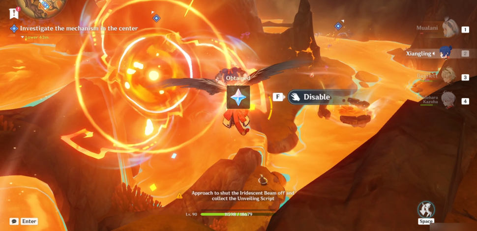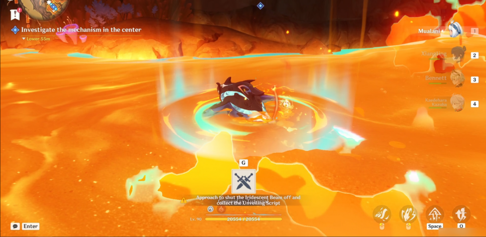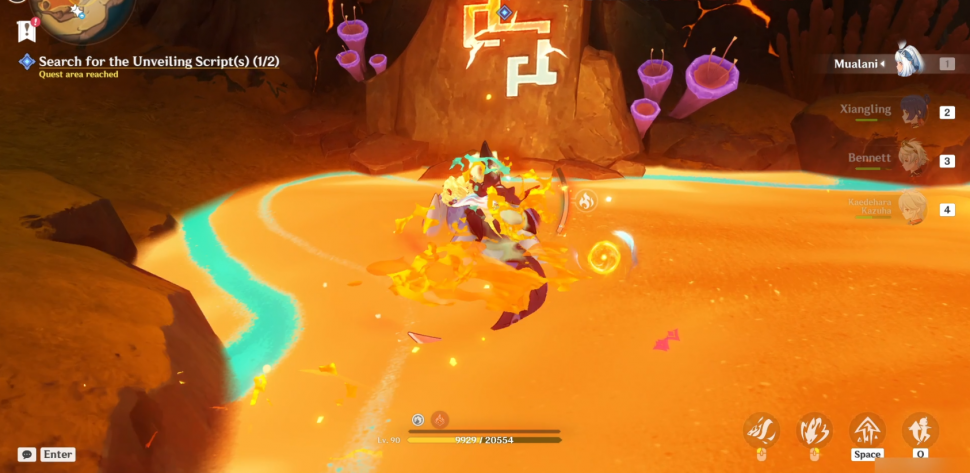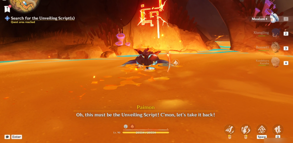 Переплывите лаву и взаимодействуйте с Откровенными сценариями. Атакуйте Unveiling Scripts (кнопка левой кнопки мыши на ПК). Получив его, вернитесь к Гравюре флогистона, и там появится возможность Активировать. После этого запертые ворота откроются наполовину, но вы все равно сможете пройти через них. Пройдите через ворота и возьмите с собой Кохолазавр, потому что вам нужно будет использовать его раньше (если только у вас нет Муалани).