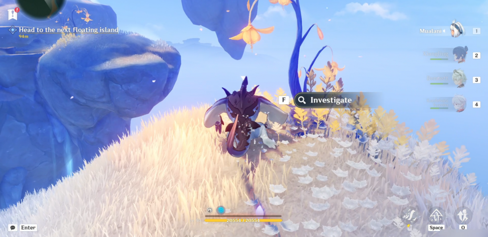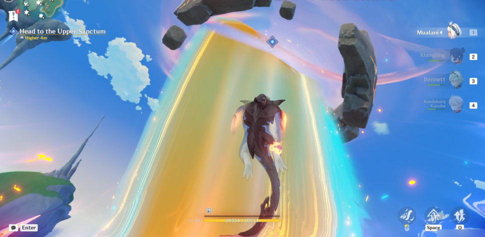 В Верхнем святилище вам нужно обойти все плавучие острова. На втором острове исследуйте цветок, чтобы вызвать поток ветра, и вы сможете проплыть над ним. Там вы найдете Радужную надпись. Взаимодействуйте с ней и отправляйтесь на третий остров.