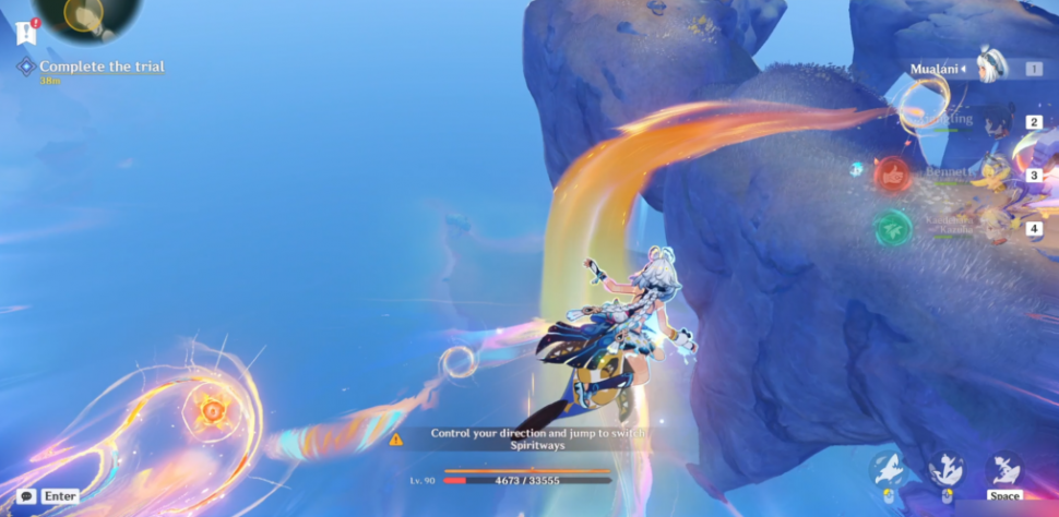 В последнем испытании вам нужно пройти через тонны спиритических путей. На этот раз вы можете управлять своим направлением, чтобы переключать спиритические пути (управляйте персонажем, чтобы двигаться влево, и нажмите Пробел, чтобы прыгнуть). Появится новый остров, на котором вы высадитесь и завершите квест.