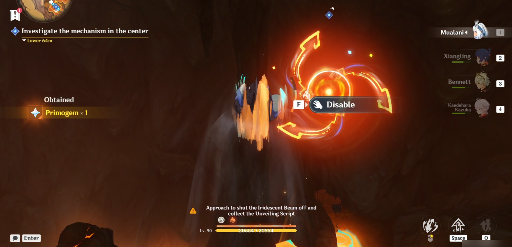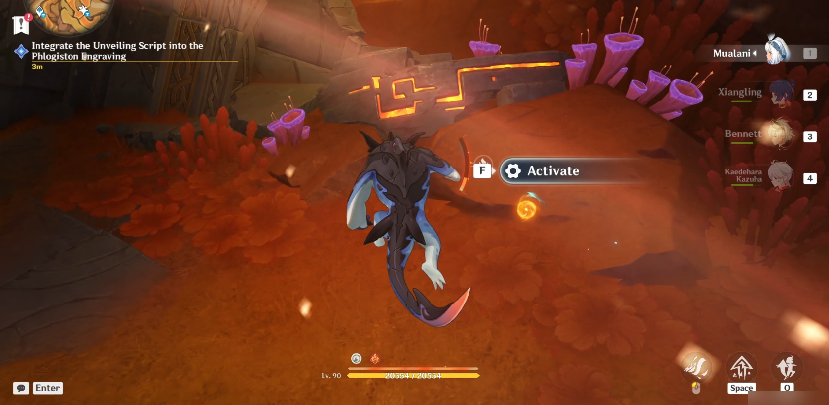 Переплывите лаву и взаимодействуйте с Откровенными сценариями. Атакуйте Unveiling Scripts (кнопка левой кнопки мыши на ПК). Получив его, вернитесь к Гравюре флогистона, и там появится возможность Активировать. После этого запертые ворота откроются наполовину, но вы все равно сможете пройти через них. Пройдите через ворота и возьмите с собой Кохолазавр, потому что вам нужно будет использовать его раньше (если только у вас нет Муалани).