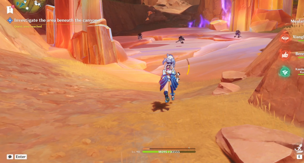 Во второй локации вам нужно сначала победить рифхаундов и других врагов, прежде чем вы сможете открыть подземную область под каньоном. На этом заканчивается квест «Под хрустальной скалой» и начинается квест «Мир дремлющим».