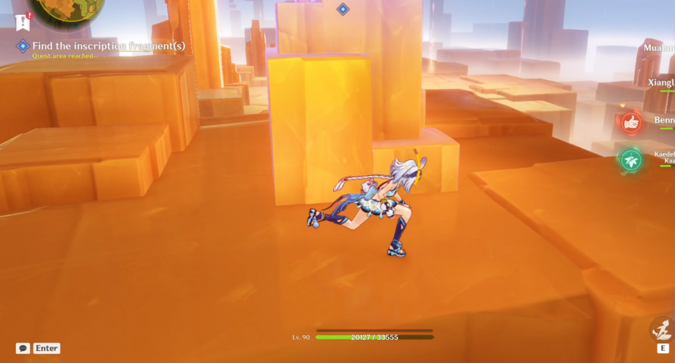 Как только вы взаимодействуете с первыми 3 фрагментами надписей, появится большой Рифтхаунд, которого вам нужно будет победить первым. После этого вы окажетесь в окружении блоков, из которых нет выхода. Отыщите своего друга Сауриана и отправляйтесь к нему, чтобы найти правильный путь, и вы встретитесь с последним фрагментом надписи.