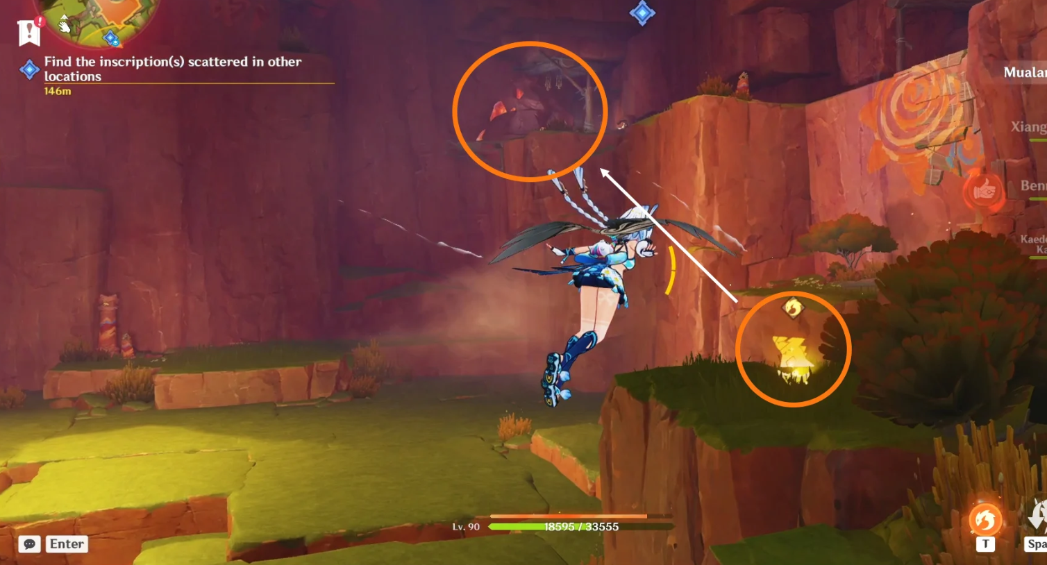 Но прежде всего вселитесь в Тепетлизавра, подойдите к разрушаемой скале, как обведено на картинке выше, и разбейте ее. За ним будет расплавленная трещина. Войдите в расплавленную трещину, чтобы подняться еще выше.