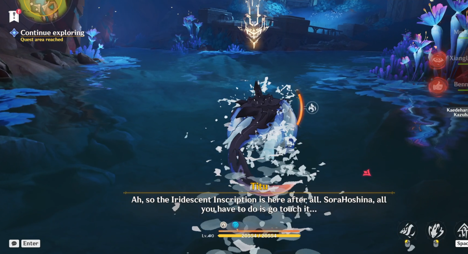 Пройдите через это отверстие и взорвите кристаллы нестабильного флогистона (маленькие кристаллы на земле), чтобы взорвать небольшой проход и еще больше понизить уровень воды.