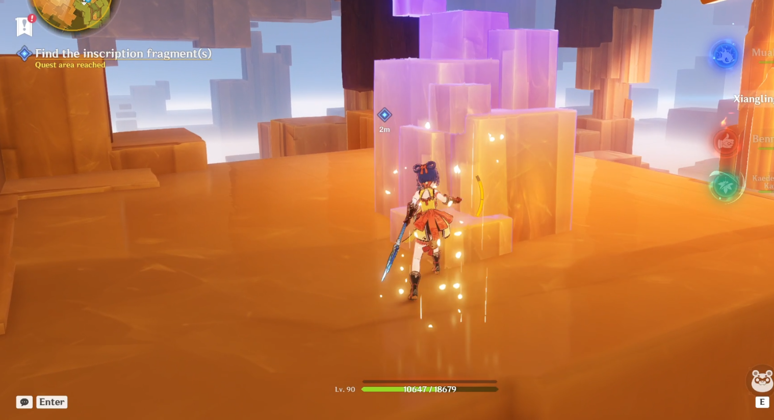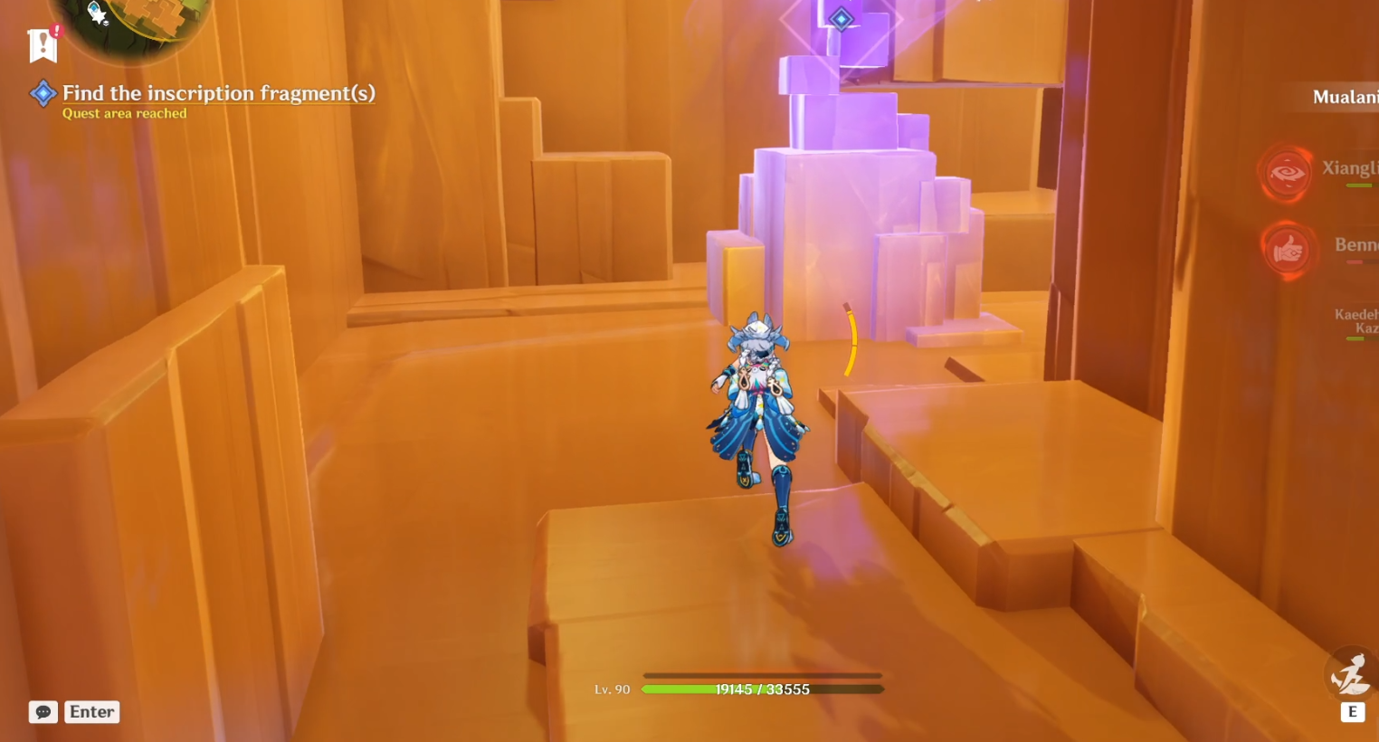 Теперь вам нужно найти 3 разных фрагмента надписей. Все они находятся в блоке, из которого вытекает фиолетовый осадок. Вам нужно использовать любую атаку, предпочтительно атаку Клеймора, чтобы разрушить блок и получить фрагменты надписи.