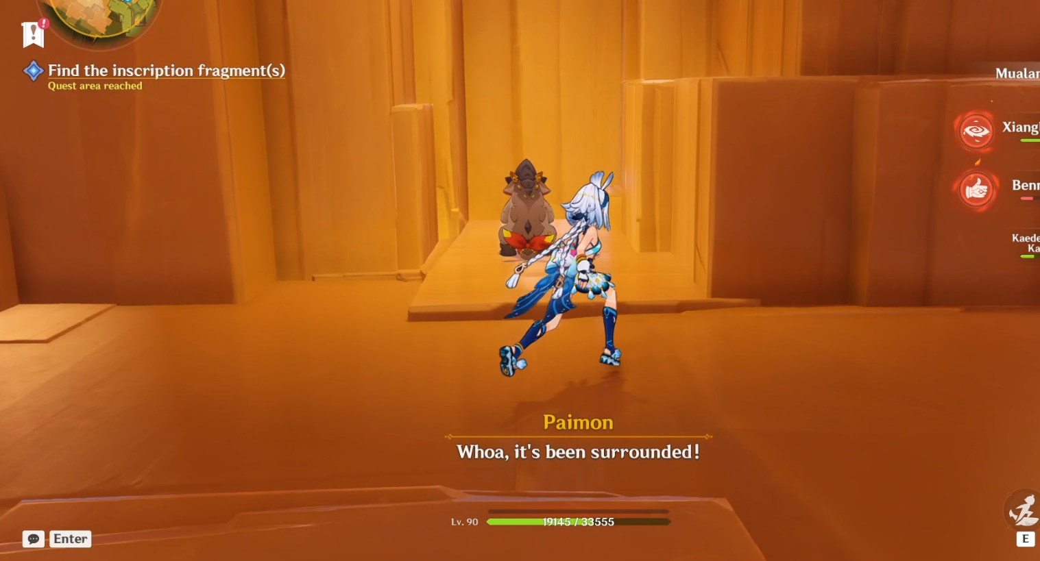 Как только вы взаимодействуете с первыми 3 фрагментами надписей, появится большой Рифтхаунд, которого вам нужно будет победить первым. После этого вы окажетесь в окружении блоков, из которых нет выхода. Отыщите своего друга Сауриана и отправляйтесь к нему, чтобы найти правильный путь, и вы встретитесь с последним фрагментом надписи.