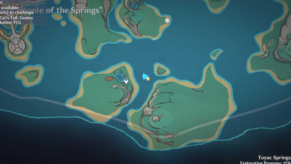 Чтобы начать это испытание, вам нужно телепортироваться в вапоинт «Воды Амеялко», расположенный в нижней части карты Натлана. Оттуда превратитесь в одного из кохолазавров и плывите на восток, чтобы найти несколько плавучих средств, образующих круг. В круге не хватает одного поплавка, который вы сможете найти, если проплывете еще немного на восток. После того как вы преодолеете круг из поплавков, должно появиться испытание.