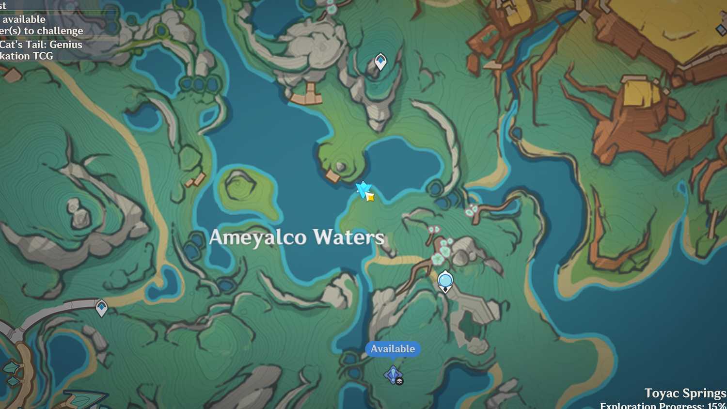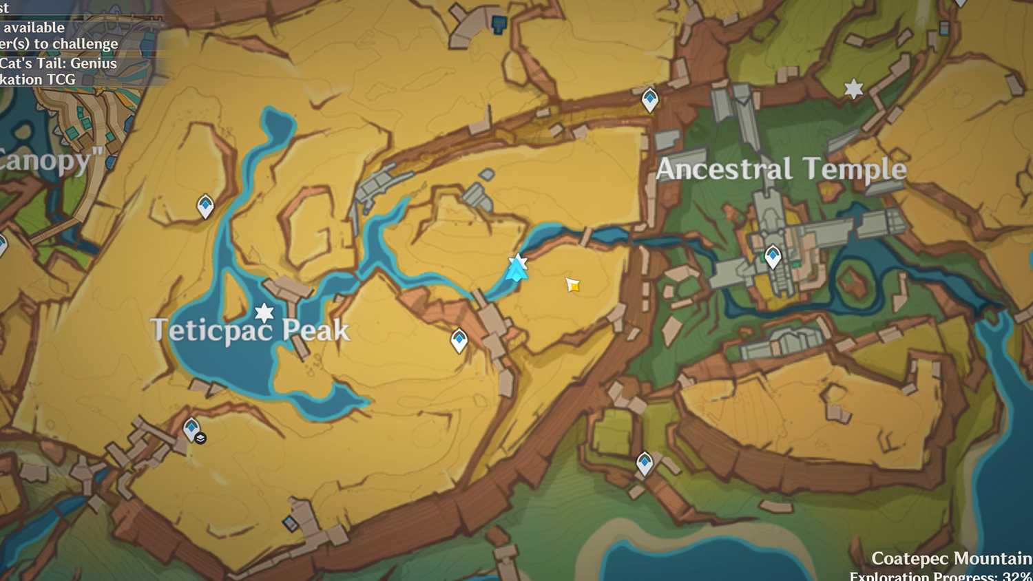 Если вы ищете Мацатли в районе Народных источников, то вы его никогда не найдете. Забавно, но Мацатли стоит в реке на вершине пика Тетикпак. Вы можете найти его местоположение к северу от восточной точки маршрута Teticpac Peak. Он должен быть виден сразу после телепортации.