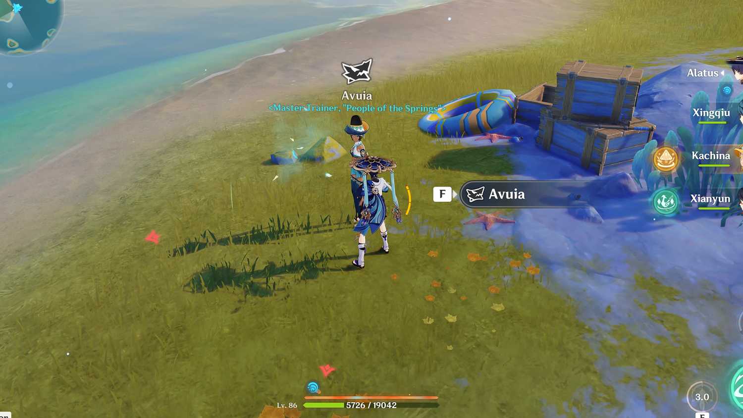 Найти Авуию непросто, поскольку она находится на пляже в одиночестве, вдали от интересных достопримечательностей. Чтобы добраться до нее, начните путь от Статуи Семерых в водах Амеялко и двигайтесь на юг, переплыв немного воды, чтобы добраться до пляжа, на котором она стоит. Там разбросано множество кохолазавров, так что вы можете использовать одного из них, чтобы доплыть до Авуи, ведь вы все равно будете использовать их способности, чтобы закончить ее испытание.