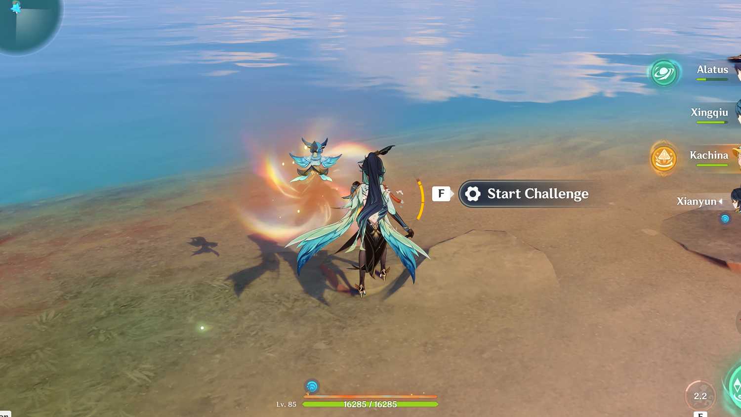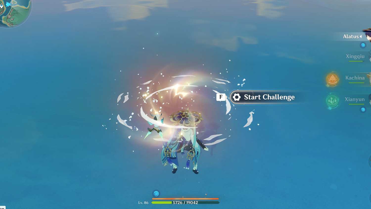 Чтобы начать это испытание, вам нужно телепортироваться в вапоинт «Воды Амеялко», расположенный в нижней части карты Натлана. Оттуда превратитесь в одного из кохолазавров и плывите на восток, чтобы найти несколько плавучих средств, образующих круг. В круге не хватает одного поплавка, который вы сможете найти, если проплывете еще немного на восток. После того как вы преодолеете круг из поплавков, должно появиться испытание.