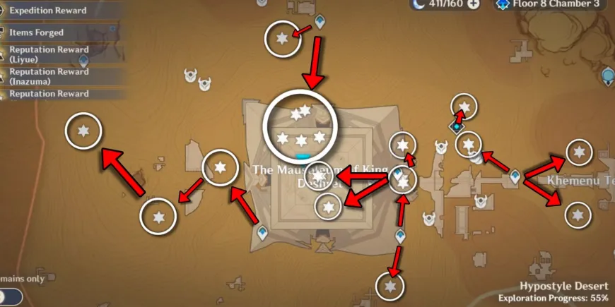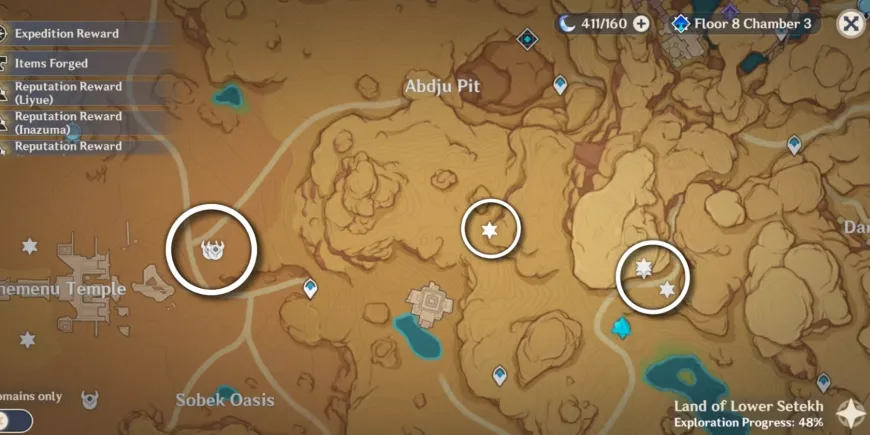 Primal Constructs в этой области также легко доступны. Чтобы получить одну звезду, просто войдите в нее из точки телепортации к востоку от храма Кхемену. Для получения трех других звезд игроки должны использовать маршрут, ведущий к Сверкающему компоненту Ямы Абджу в Genshin Impact.