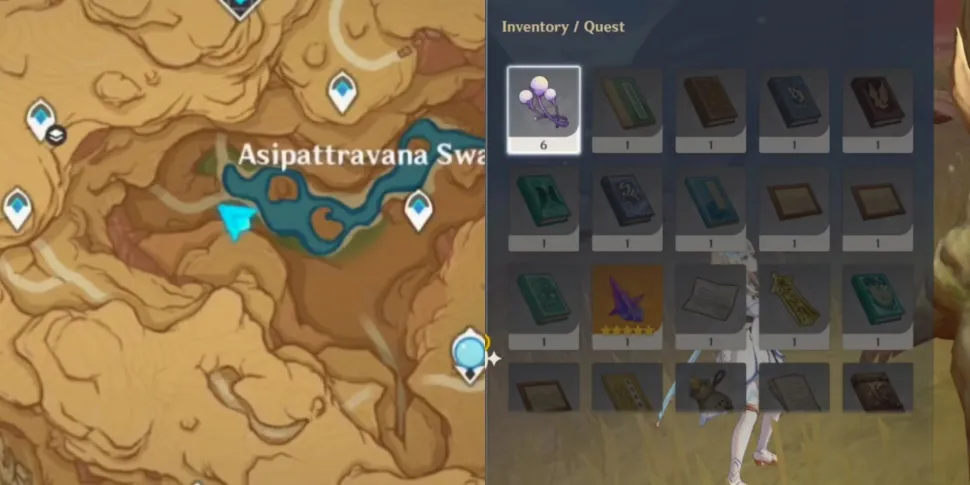 Отправляйтесь на болото Асипатравана и подойдите к дереву Фраваши на западе. Остаток Пари в этом месте требует три пестика Удумбары, которые можно получить из цветка Удумбары в Genshin Impact.