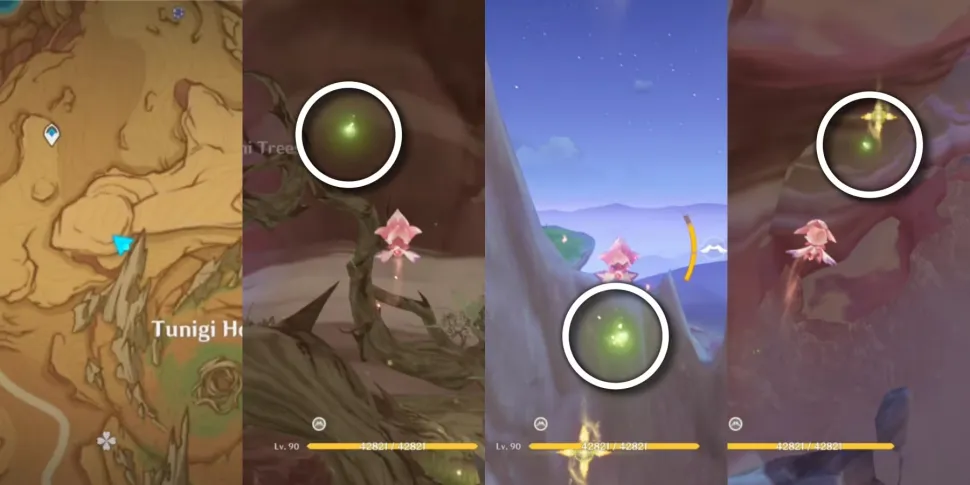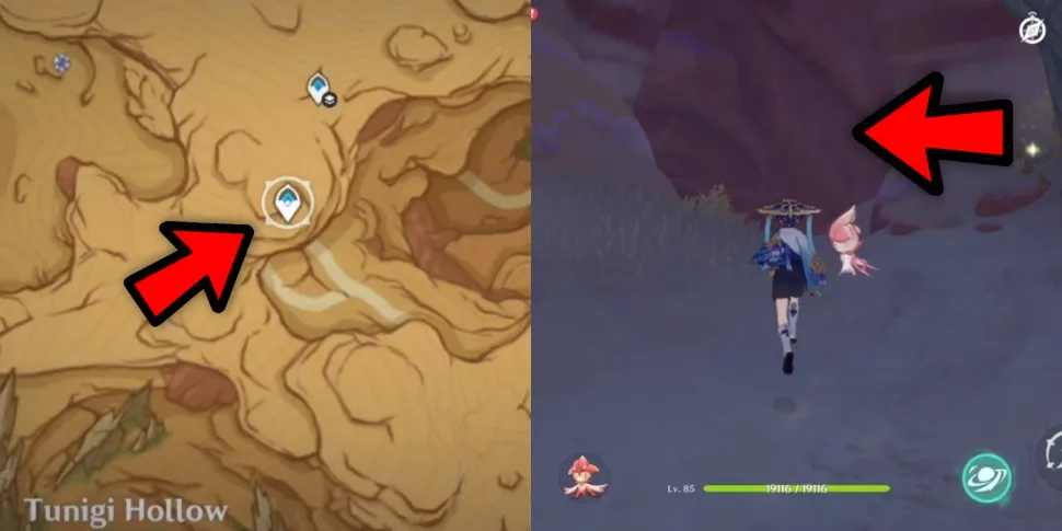 Теперь вернитесь к точке телепортации к юго-западу от Лощины Туниги и отправляйтесь на северо-восток. Остатки Pari в этом дереве Fravashi Tree вызовут появление Hilichurl, Mitachurl и Pyro Abyss Mage. Так что будьте готовы и постарайтесь иметь персонажа Hydro в Genshin Impact.